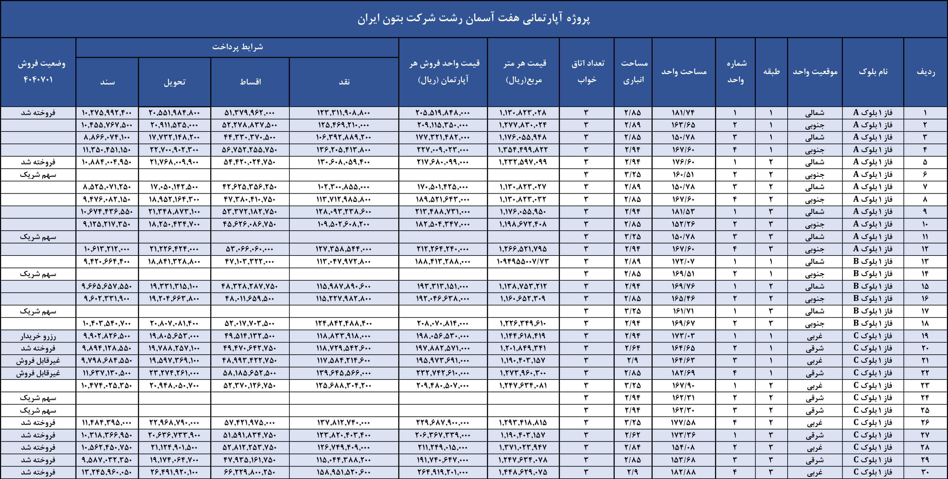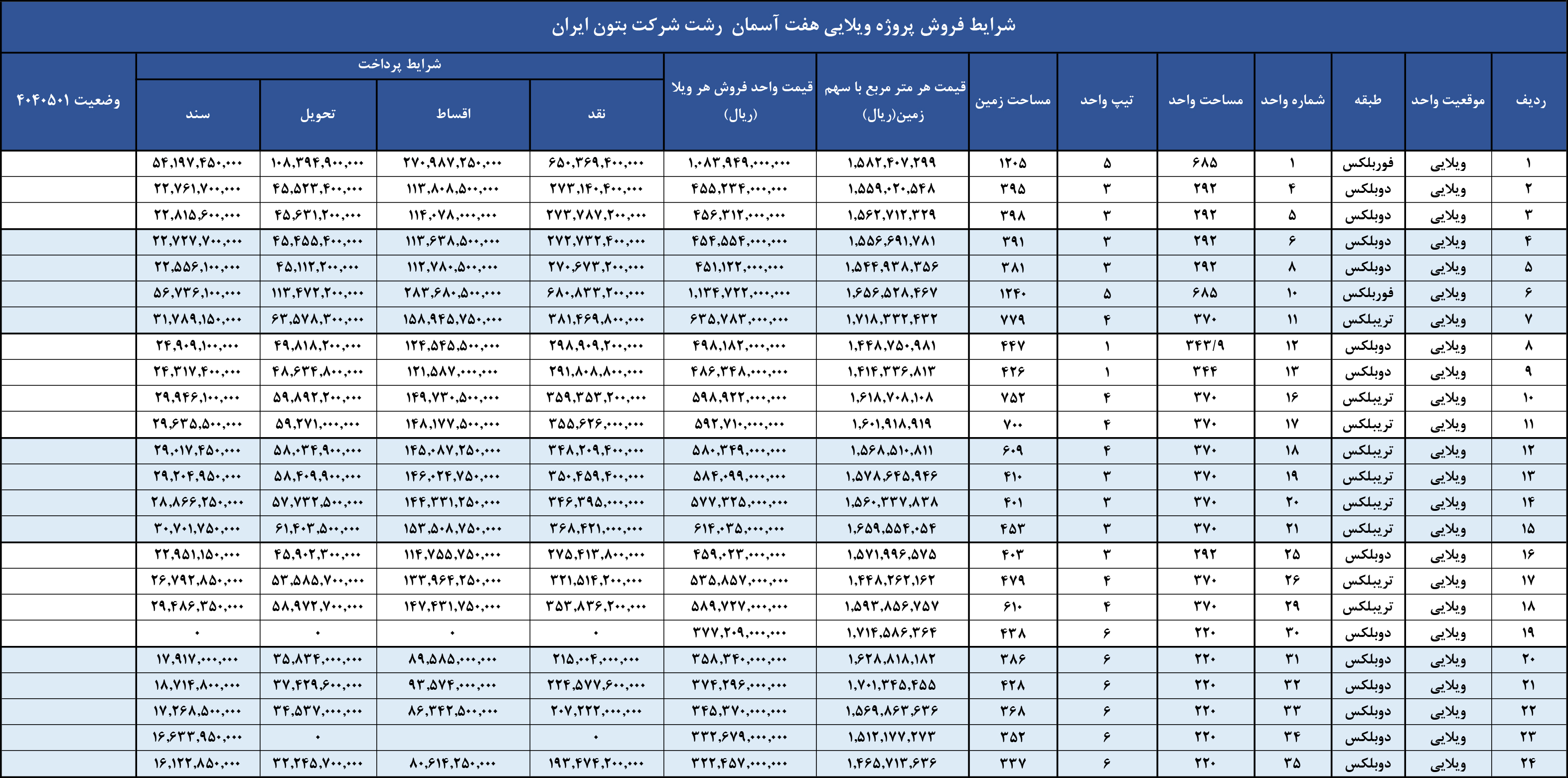 مشخصات کلی ویلاهای پروژه هفت آسمان رشت